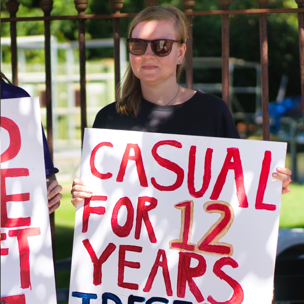 As a staunch unionist and member of NTEU Fightback, I led strikes to defend our pay and conditions, and fought to keep striking in the last EBA campaign. I was picket captain and helped win people over to the union.